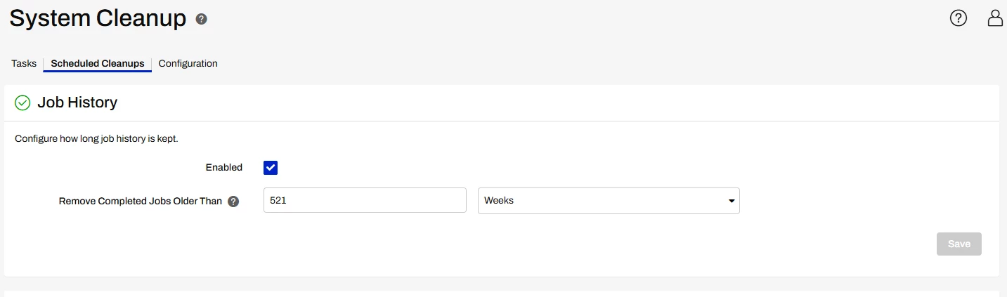 I want to ensure that the Job logs are retained for 521 weeks and do not get deleted during the system cleanup.