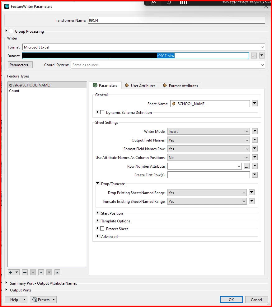 Tried connecting all connections to one feature writer but it seems to be limiting me to one excel file if I do that so I did multiple feature writers for each excel file that I want.