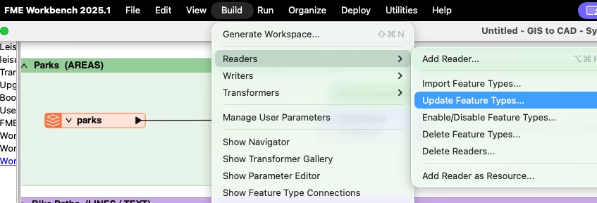 When using > 2025.1 Form workbench, the dropdowns Build > Readers has the import and update feature types
