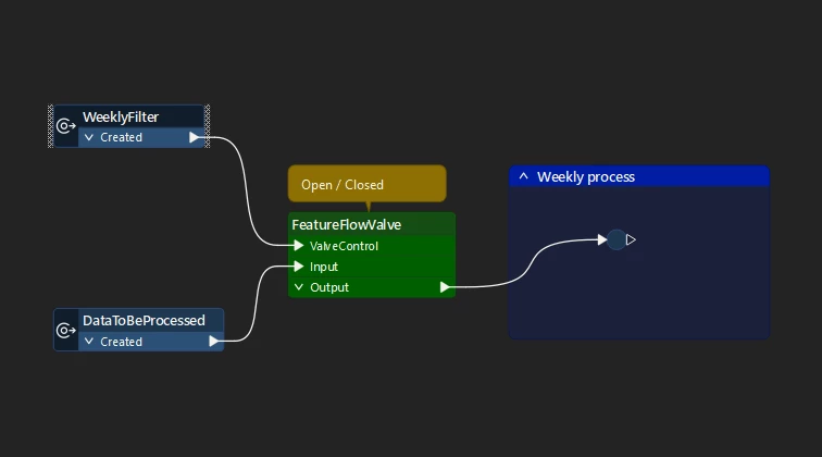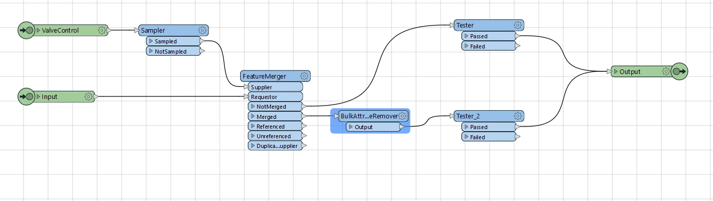 If you Embed the FeatureFlowValve (right mouse click → Embed), you can then right mouse click again and edit it, and update the Transformers if you want. It’ll also allow you to see how it works, and it is (like Matt says) basically a FeatureMerger - so you could implement this yourself as well with a FeatureMerger.