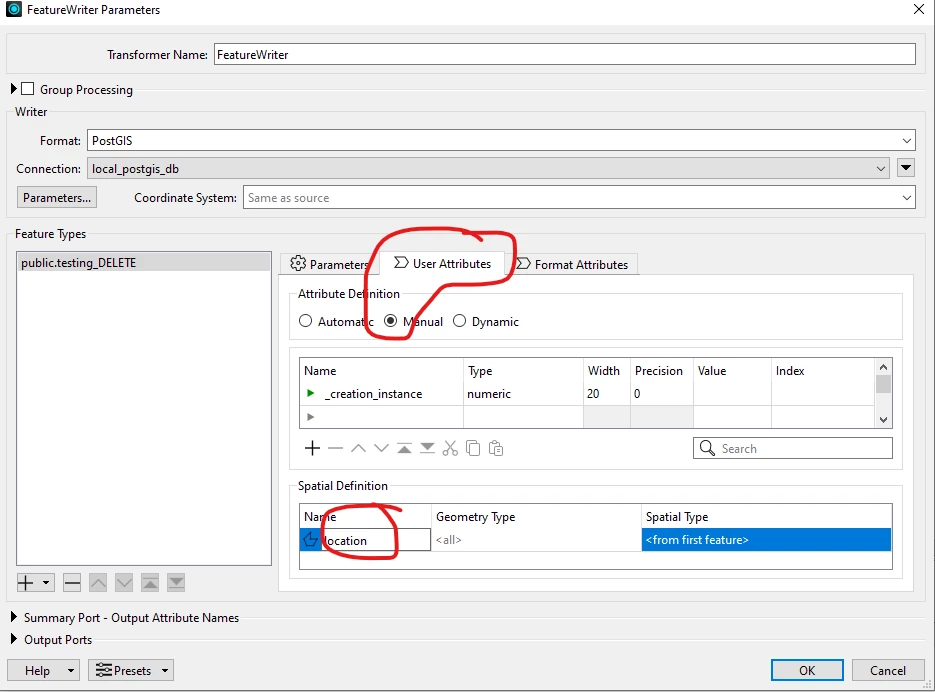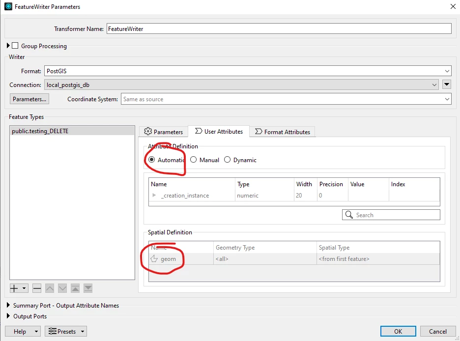 With the new spatial definition option in the FeatureWriter, it appears that Attribute Definition cannot be reverted to Automatic after first setting the Spatial Definition? In my case the format is set to PostGIS. Is this expected behavior? Am currently running FME Form 2025.1.1.0, Build 25623.