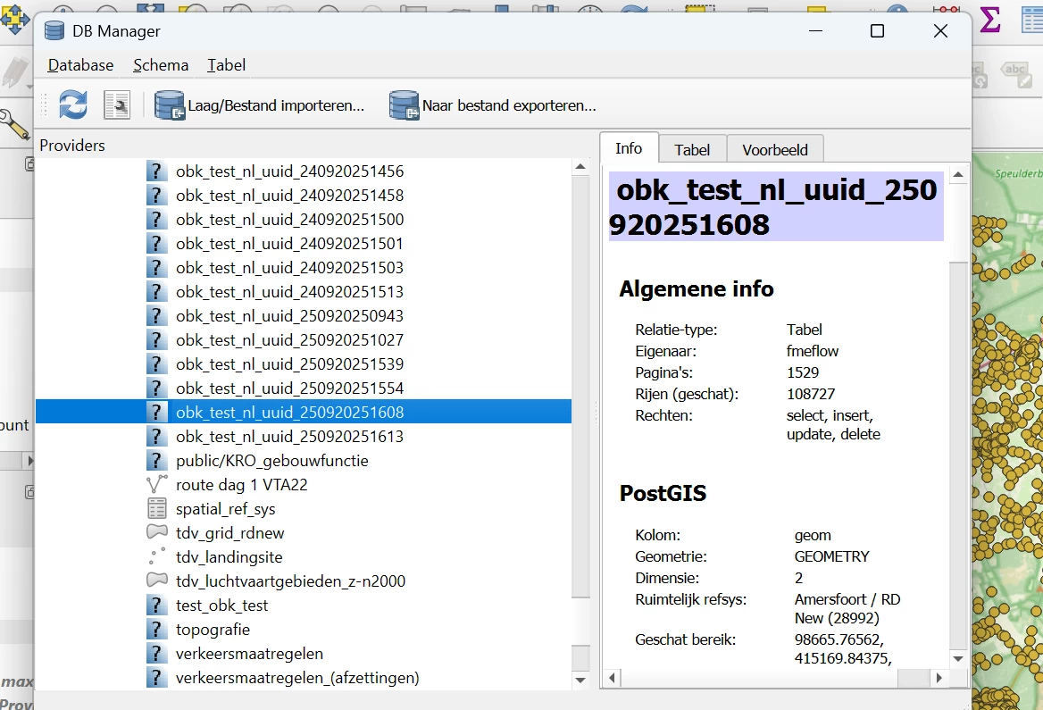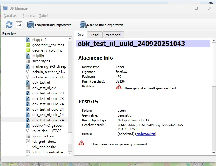 The postGIS writer says its succesfull, but when i inspect the layer in QGIS, there is no data, and i get the error: there is no item in geometry_colums. What have i done wrong in the postGIS writer? Can anyone help me?