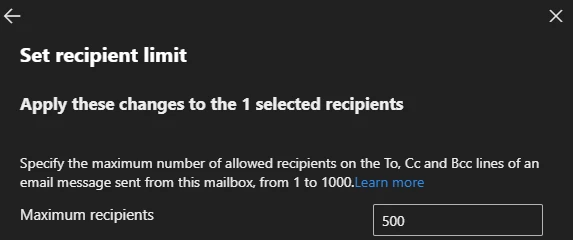 In outlook, the recipient limit been set to 500. Any other place I should look at?