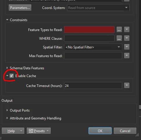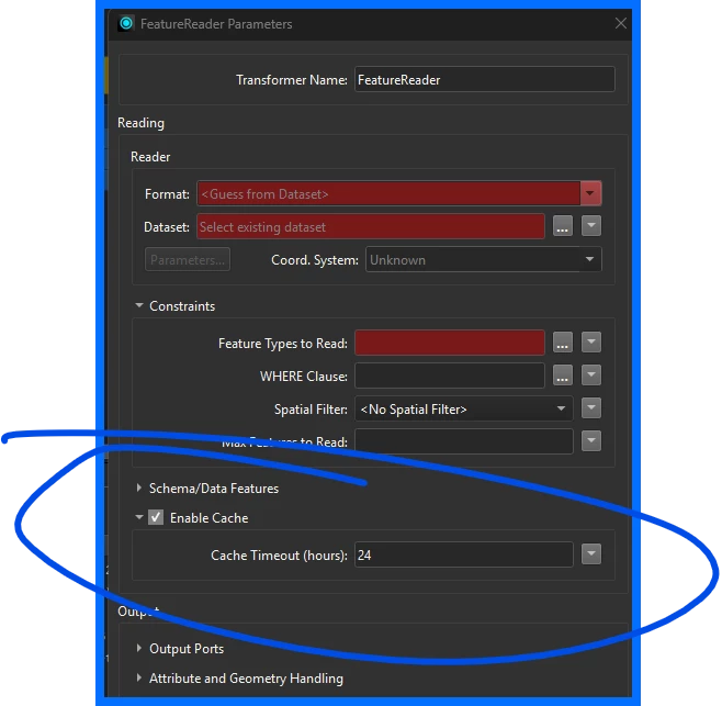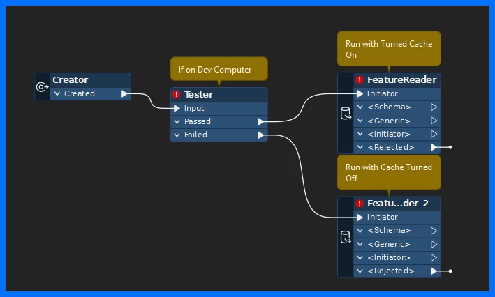 I have a complex FME workspace with about 10 Feature Readers for different databases. For development, it’s essential to use feature caching. However, when running the workspace, the caching must be turned off. My current method to release an update: