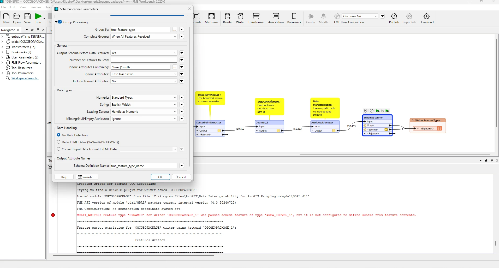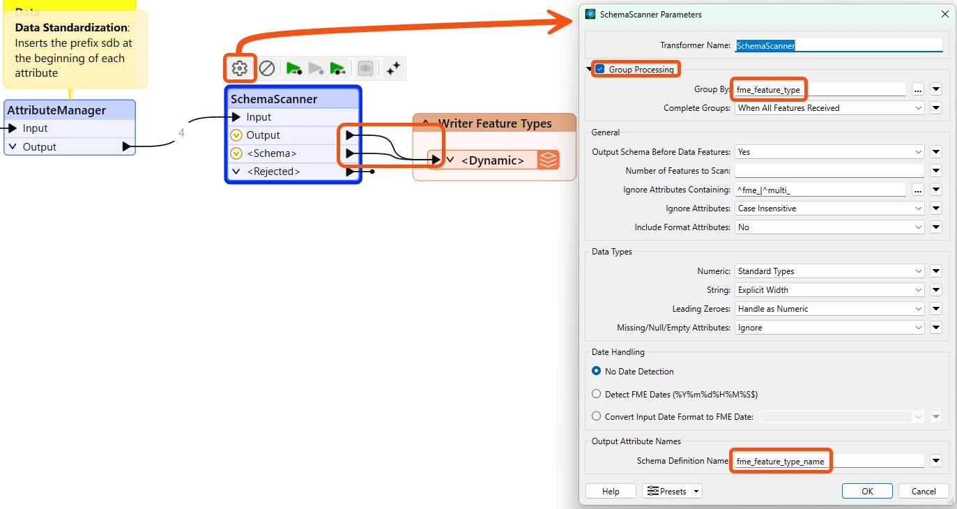 I am using a generic/dynamic schema in FME Workbench, and I have a workspace that processes multiple different datasets through the same workflow.