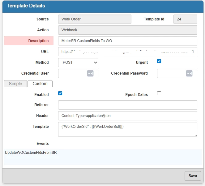 I have a working workbench that accepts a user parameter for a Cityworks WorkOrderSid. I have a FWM Flow Webhook setup per instructions. I think my issue is that the work order sid is not getting transfered as expected. Here is a screenshot of the CW Template Details: