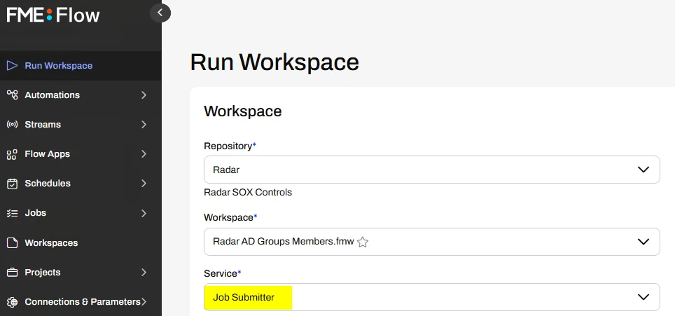 While trying to create a workspace app , I find ‘Service’ dropdown to be empty (pic2). However, I see ‘Job Submitter’ as service in the published workspace (pic1). May be I am missing something as we just started using FME products. Thanks for your review and input.