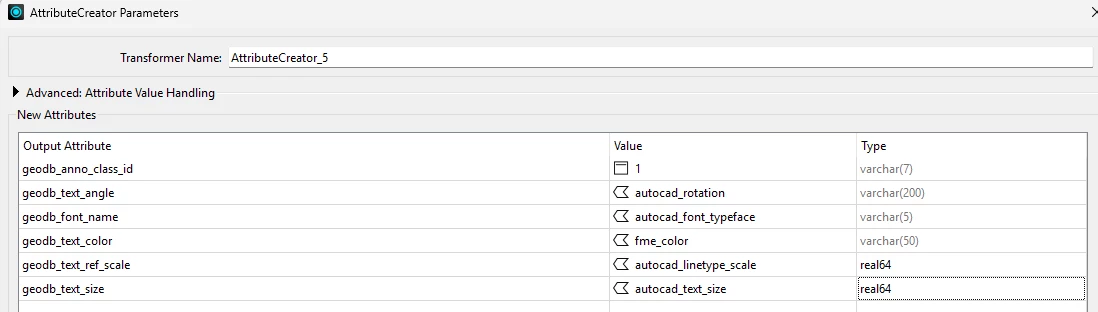 I have text from a source DWG that contains all the information needed to create an annotation class in a geodatabase (text size, rotation, color hex/RGB/fme, etc.). I’m able to create the annotation class in the GDB, but all the text comes in as black, even though the original text has different colors.