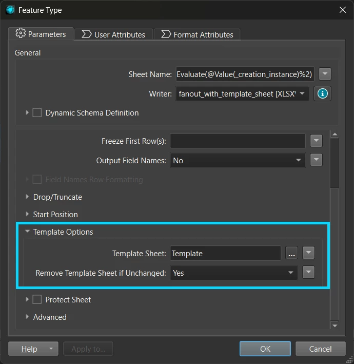 What I’m seeing is that only the first worksheet shows the designed template but no results, while the subsequent worksheets contain the results but lose the template formatting. Even when I set Remove Template Sheet if Unchanged to Yes, the first worksheet (the template sheet) is still present with no results filled in.
