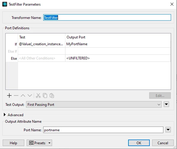 I would like to automatically record different Output Port names into one new attribute. So in the newly generated output file there is al column with the name of the Output Port and a column with the value from the TestFilter.