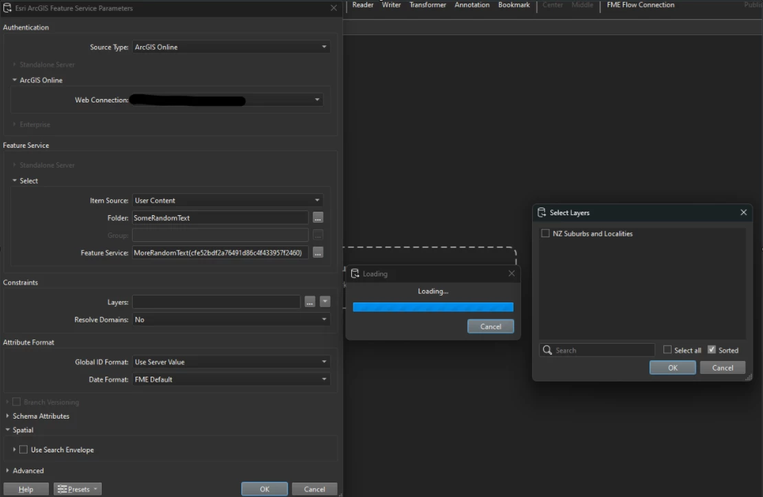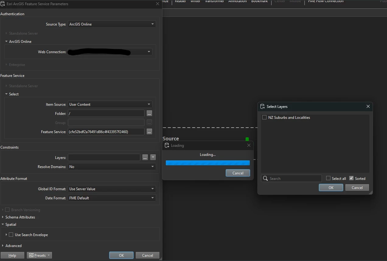 @nordpil @evieatsafe You can paste an AGOL item id (feature service item id’s accessible via your web connection, including external public items) and enclose in brackets as the Feature Service constraint then select the relevant feature layers in the service. It seems that as long as there is a value in the Folder constraint (e.g. /), the Feature Service item id enclosed in brackets will work.