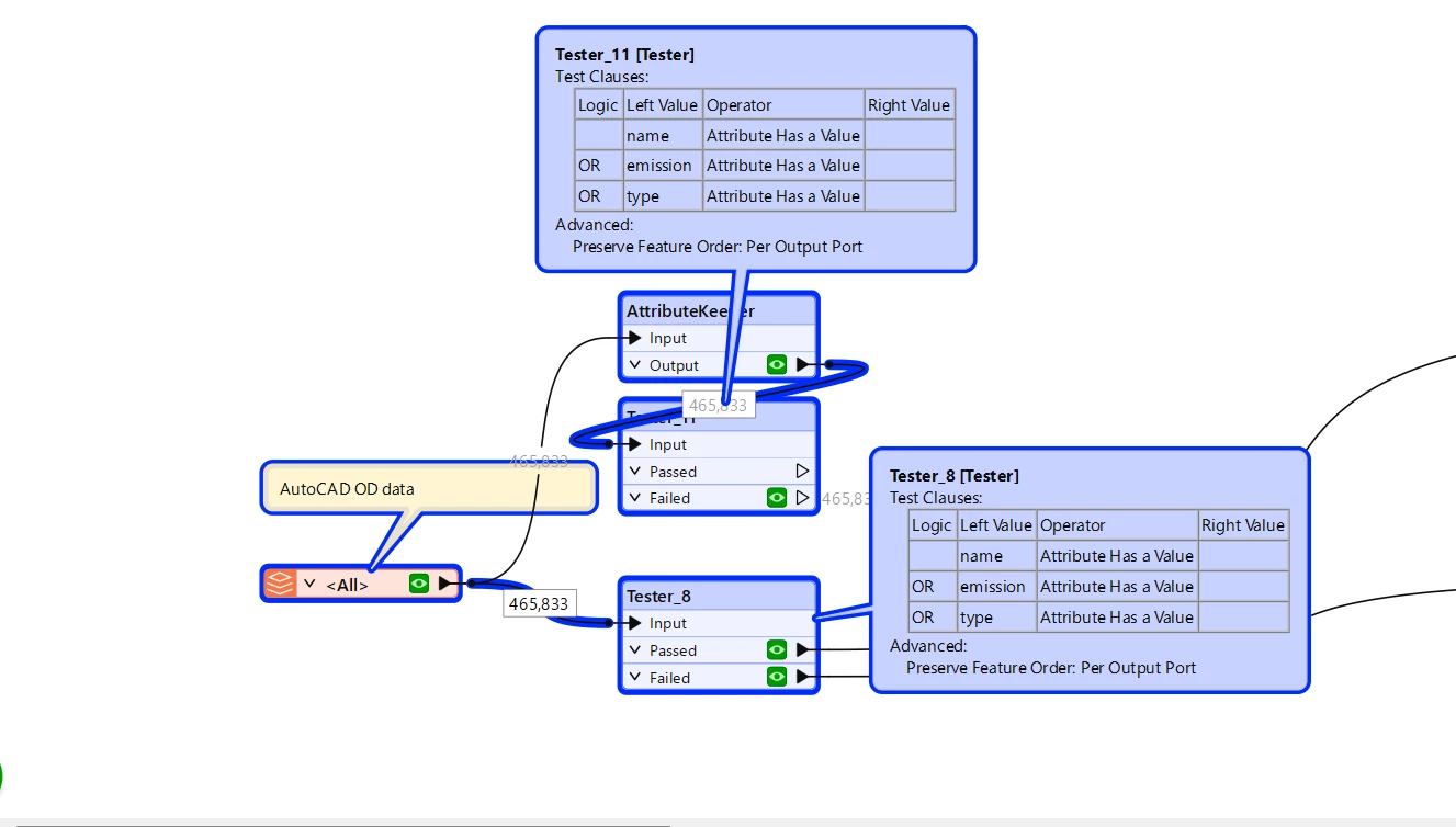 I then created a tester to distinguish which features have been attached to the table. (tester_8). Then i use an attributekeeper. The OD table attributes are not available in the keeper. Then attach the same exact tester (tester_11) and all of the features fail. If i remove the attributekeeper the features route correctly. Also after using data preview correctly and viewing cache in the attributekeeper, the data preview will never show the OD table attributes again (add the reader again)