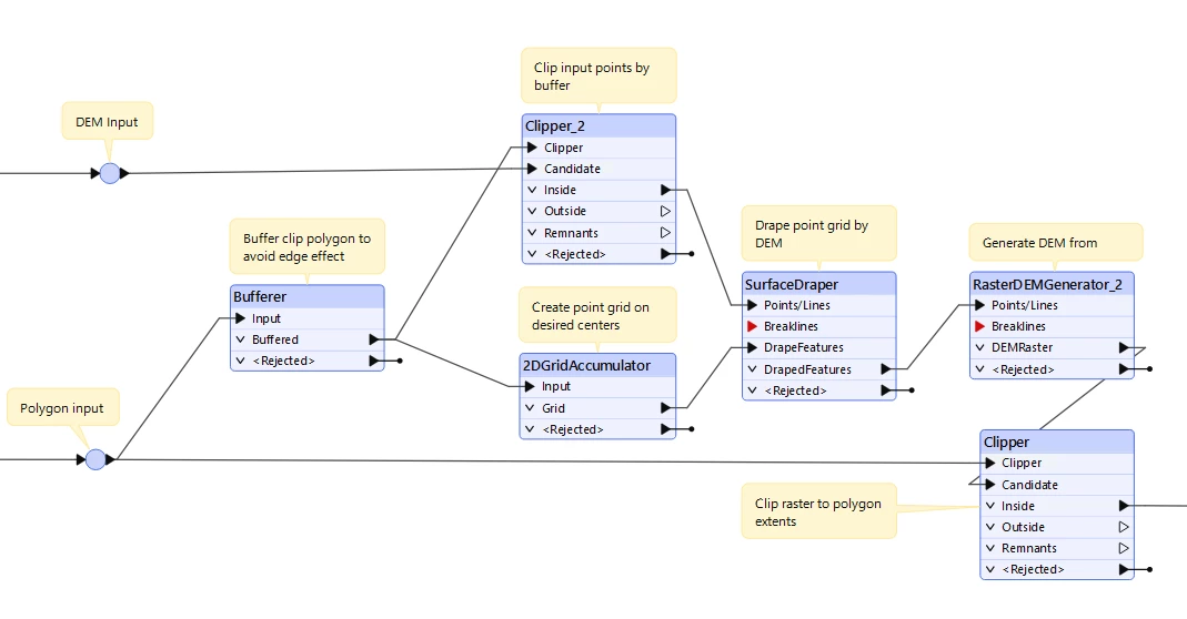 I’m clipping point clouds with a polygon (1km x 1km), the inside result goes through a rasterdemgenerator with a cell spacing of 0.5m and I write it away as a geotif. When I compare the result with the polygon I see that the geotif is 0.25m bigger than the polygon.
