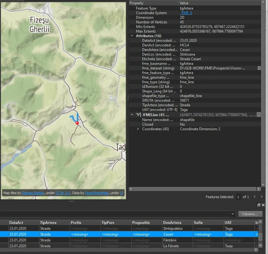 I have a shape file with few streets and I would like to extract all coordinates forming each line/street inside a new Attribute. Taking a look at picture attached, I would like to copy all sets of coordinates from IFMELine to a new attribute that I will be creating.