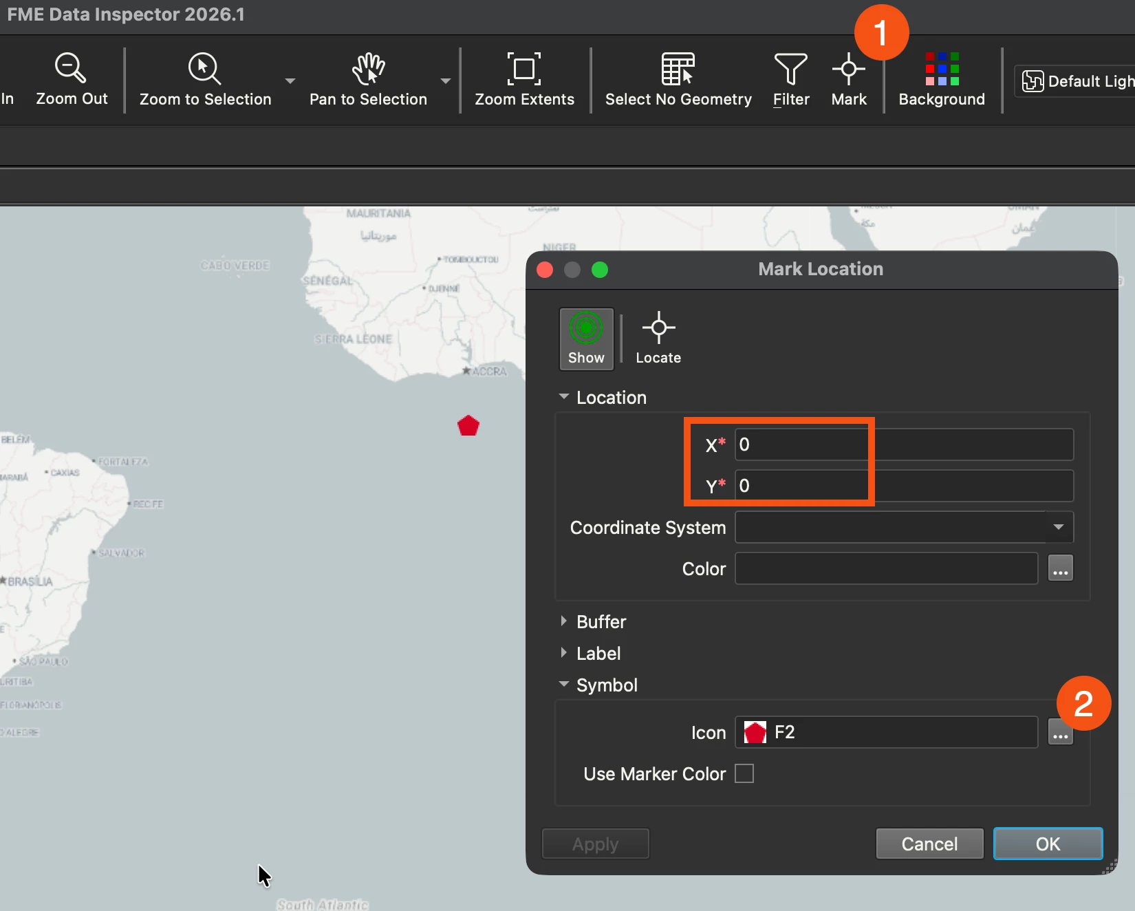 The record information shows the coordinate system is Unknown.