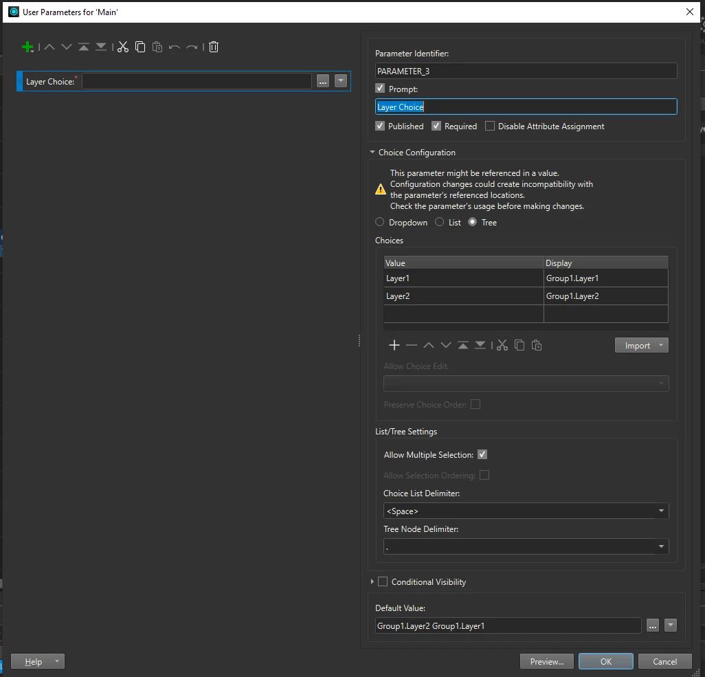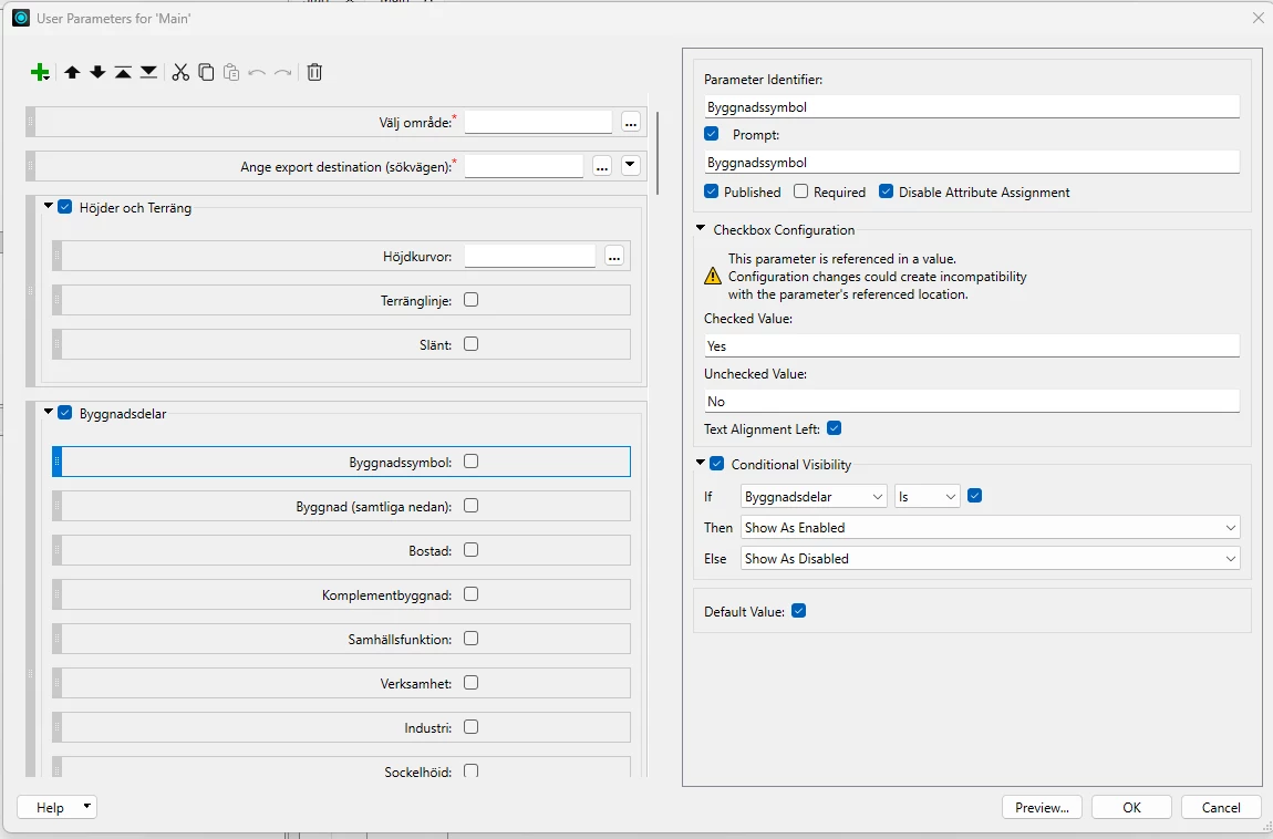 I have created a bunch of User parameter type: Groups Box in a skript. Within those Group box are a bunch of parameter type: yes/no. These parameters are used in an FME Flow APP. However. They’re not working as I want them to work. When a Group box is unchecked in the FME Flow APP then I want all the layers inside the group box to get unchecked.