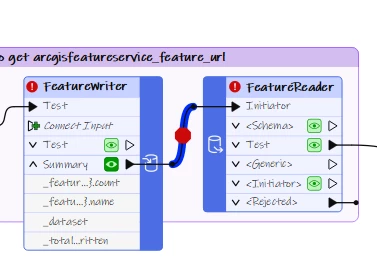 There is an enhancement/Idea request to expose the feature service feature url as an output attribute of the feature writer so that we can make this a single workspace workflow. IDEA-2341: Esri ArcGIS Feature Service – Expose Feature Service Web Service URL as an Output Attribute in the ArcGIS Feature Service Writer