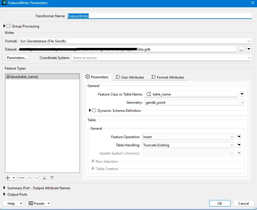 I would like to know how to pass a dynamic variable to the FeatureWriter that is generated in the SQLCreator at the start of the process.