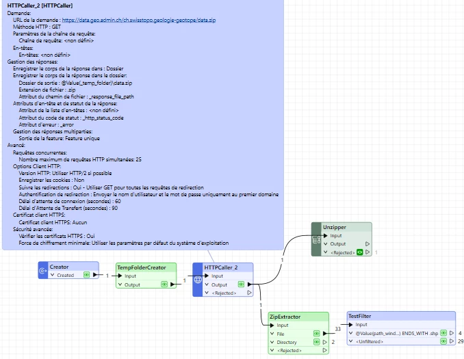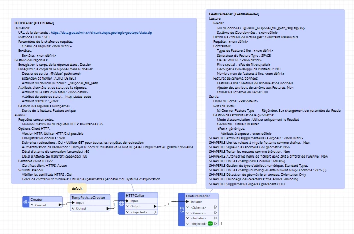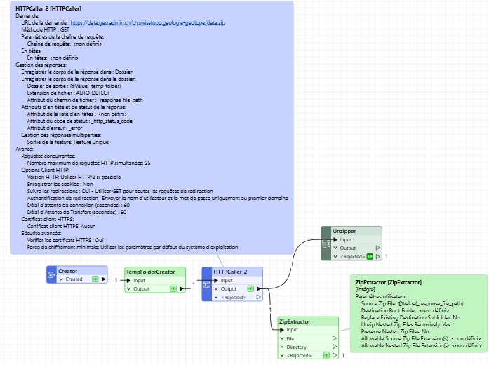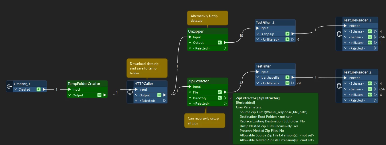 However, this may not work as the server only has data.zip as a file (FME treats zips as folders). So you may need to download the zip first to a temporary location (TempPathnameCreator and HTTPCaller) then read it from the filesystem. At this point you should be able to use the syntax of c:\temp\data.zip\data2.zip\data.shp