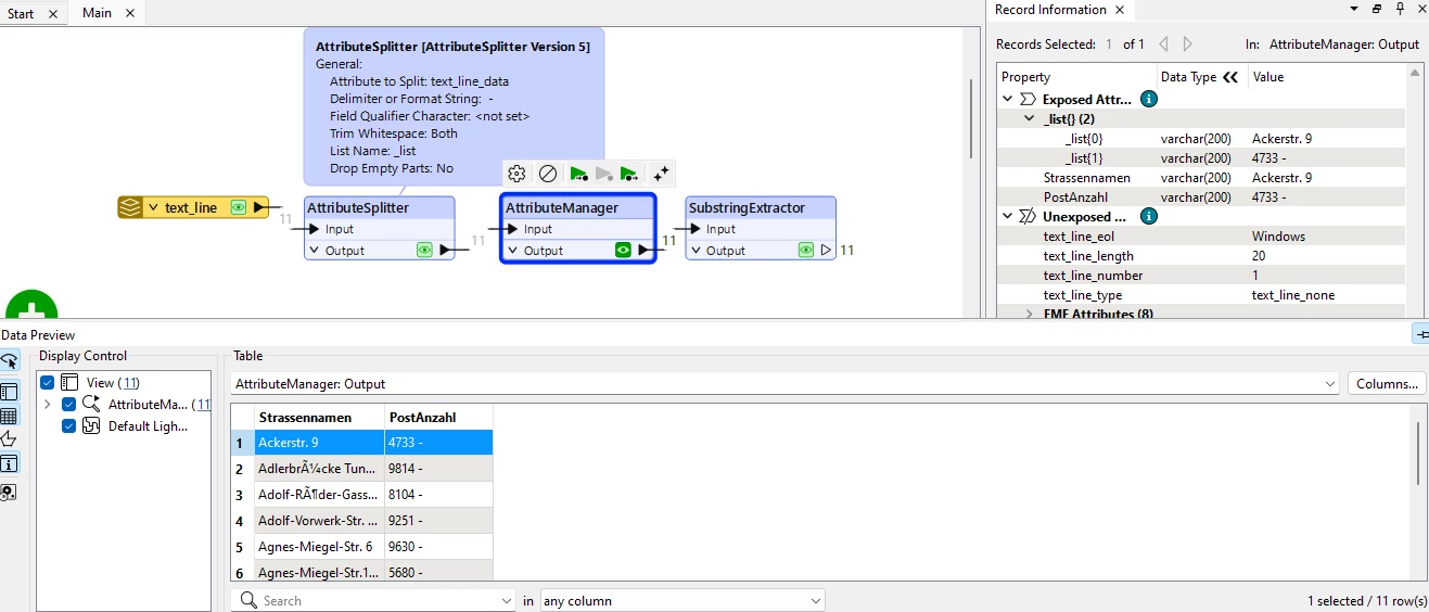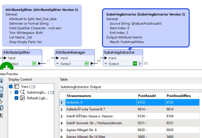 Wie lässt sich aus einer Spalte der Strassenname, Hausnummer und Zusatzinfo in eigene Spalten