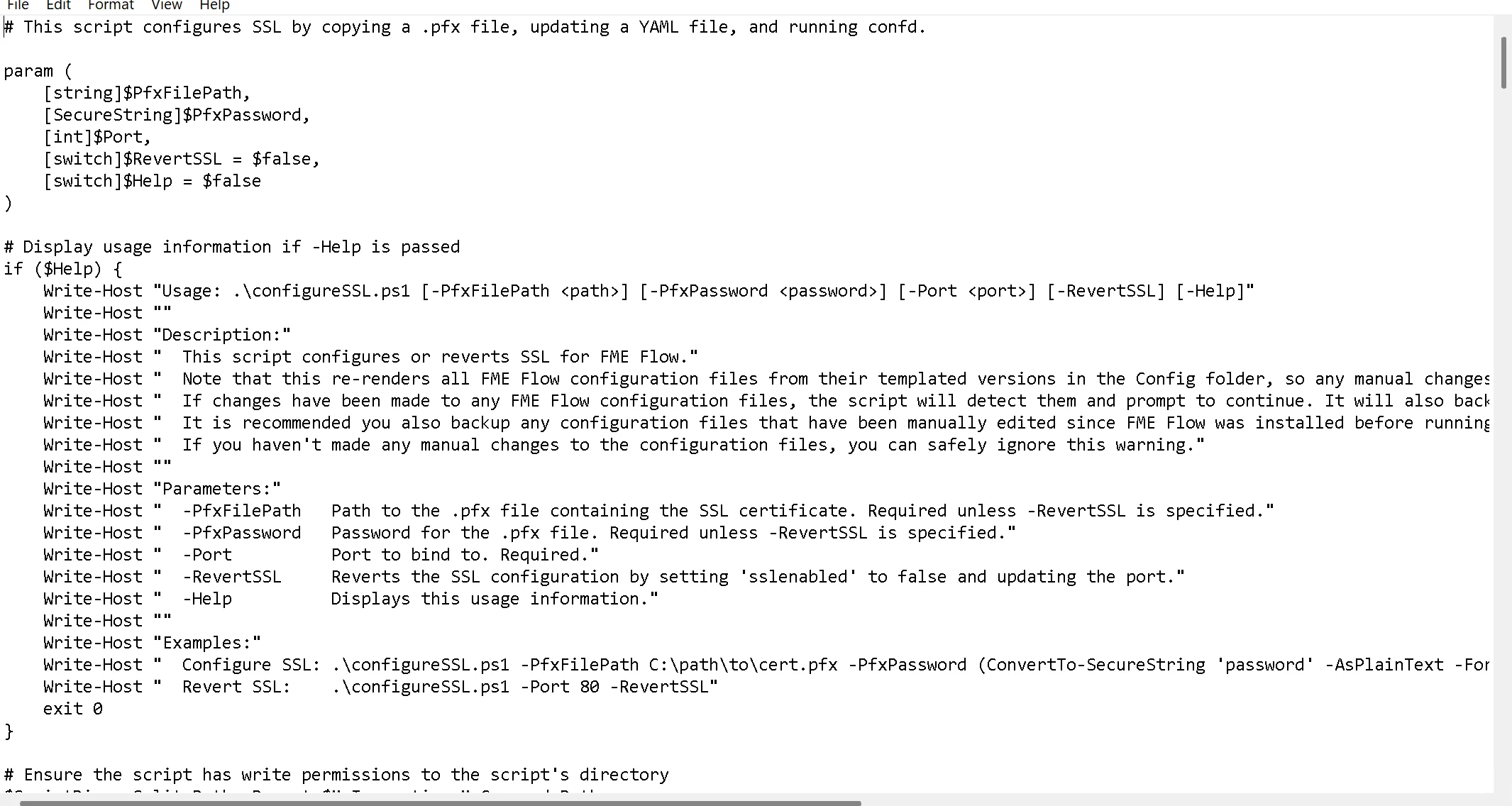 An adjacent script I noticed is configureSSL.ps1 - "C:\Program Files\FMEFlow\Utilities\configureSSL.ps1