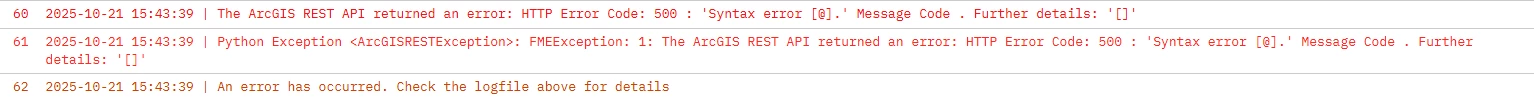 Portal Feature Service Reader > ExpressionEvalualtor Transformer > ExpressionEvalualtor Transformer > ExpressionEvalualtor Transformer > *the workflow spits here* > Write back to the Portal Feature service