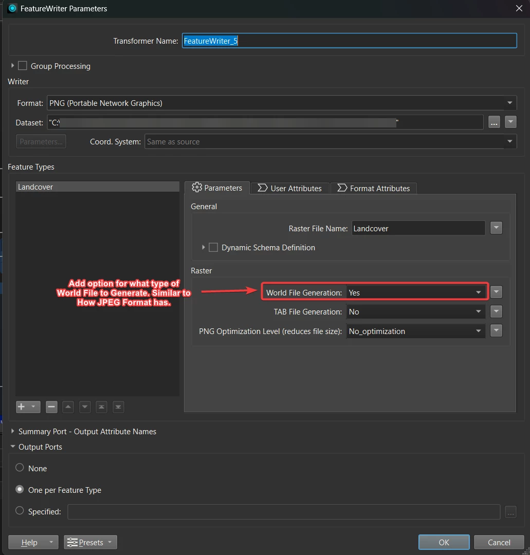 Currently I change the .wld to .pgw manually. I know there’s a way to use SystemCaller to make it change the file extension. But it would be helpful if we can just skip that entirely because it may not work as expected when we Publish workspace in FME Flow.