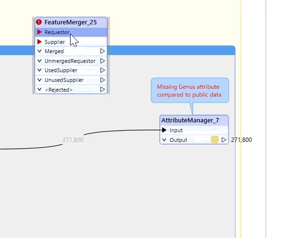 If the FeatureMerger transformer is not connected to any data connections and you move the requestor port down below supplier then drag it to a connection, the connection goes to the uppermost port - in this case the ‘Supplier’ port. I would say the default most people would want is that it looks for the ‘Requestor’ port, regardless of whether it is the uppermost port or not.