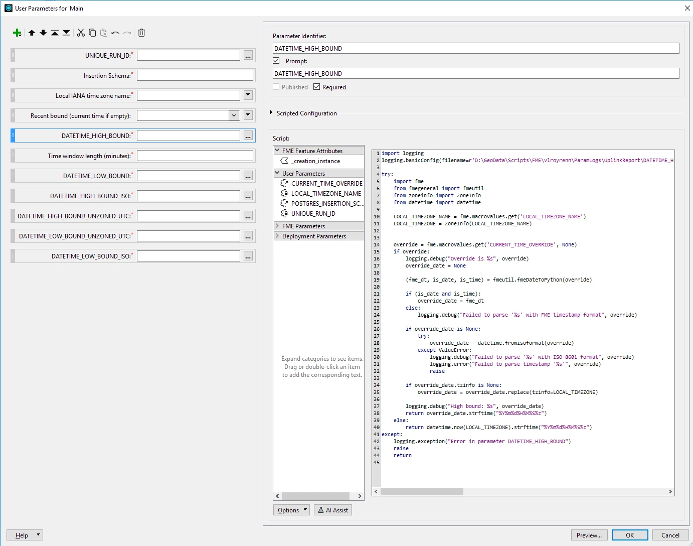 This is all just to handle both cases in the simple scenario where “Recent bound (current time if empty)” is, as the name implies, optionnal and defaulting to the moment where the script was launched if left empty.