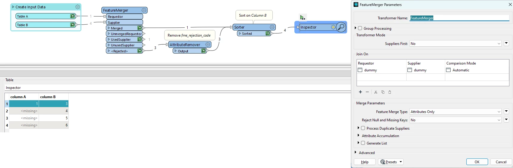I have a pretty simple problem but I cound not find any solution. I tried feature joiner and added counter so that I have a field in common for bot tables but still didnt work. Attribute manager does like “what I get” which is not really what I want. Any Idea ?