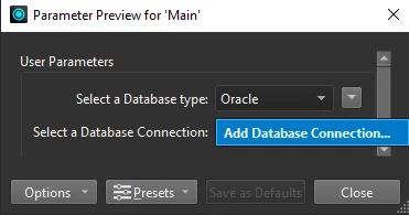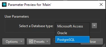 - Existing parameters require you to select a database format first