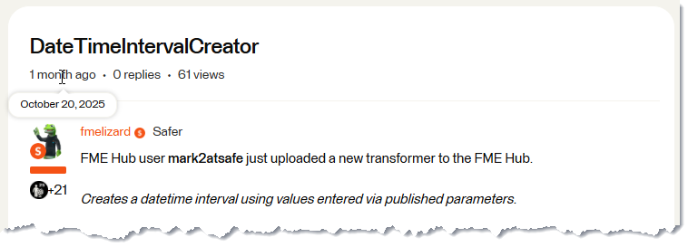 The text says that the transformer has since been removed. It hasn't, but it shouldn't matter anyway. The important thing is that the transformer is immortalized in an automated message to the FME Hub Alerts forum.