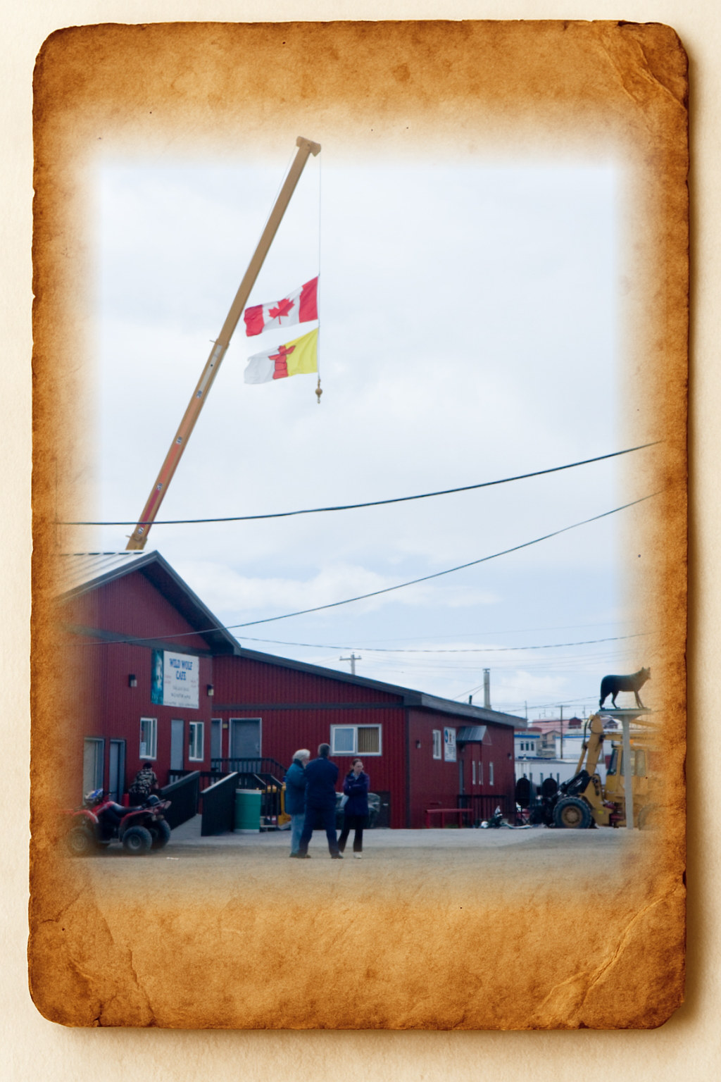- The actual clue is another photographic image. It doesn't really matter where this is. More important is that is has both the Canadian flag (country) and Nunavut flag (province).