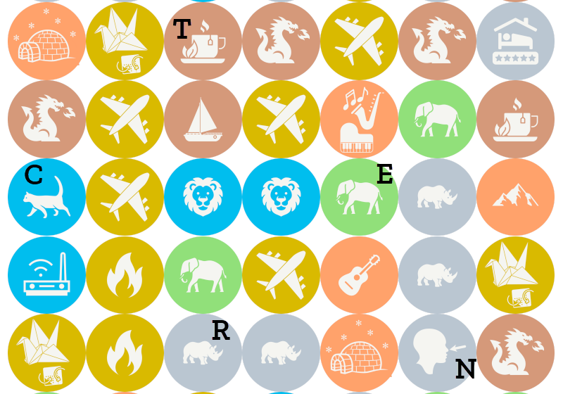 Let's look closely at the image. Hopefully, you can see that there are various icons. Each icon represents a letter of the alphabet: