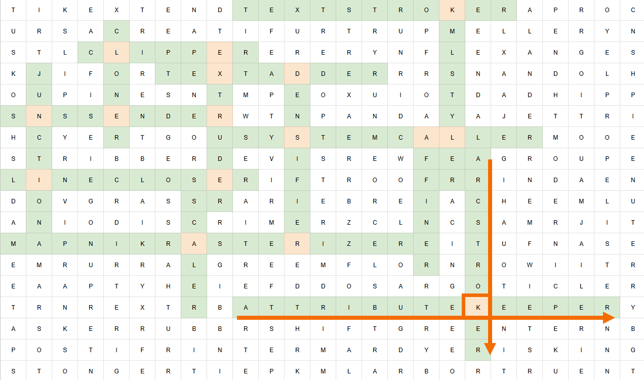 So, converting these icons into characters, we get a grid of letters, in which presumably there are hidden words. These hidden words are FME transformers: