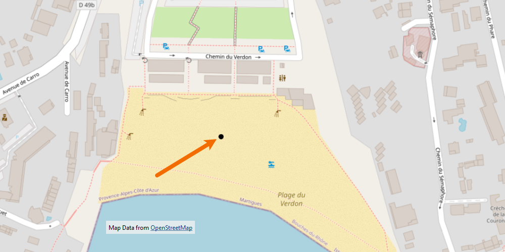 | Intersection | Plage du Verdon, Martigues, France, Europe | 43.33262172 | 5.04985106 |