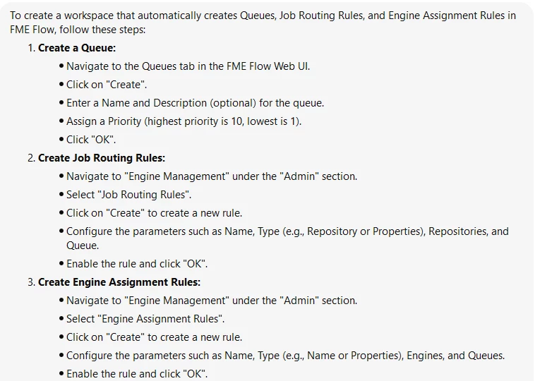 I asked how to create a workspace that automatically creates Queues and Job Routing Rules via the REST API. AI Assist basically told me to do it manually ;-)