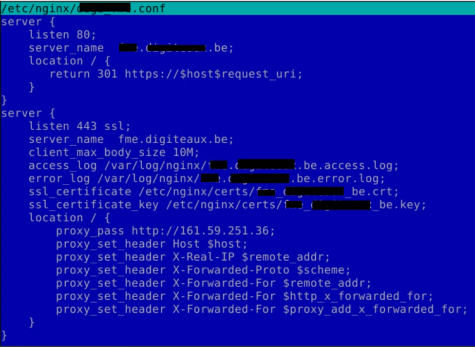 Our FME Flow server is installed behind a secure proxy and is accessible via the following URL: **[https://my.domaine.be](https://my.domaine.be)**