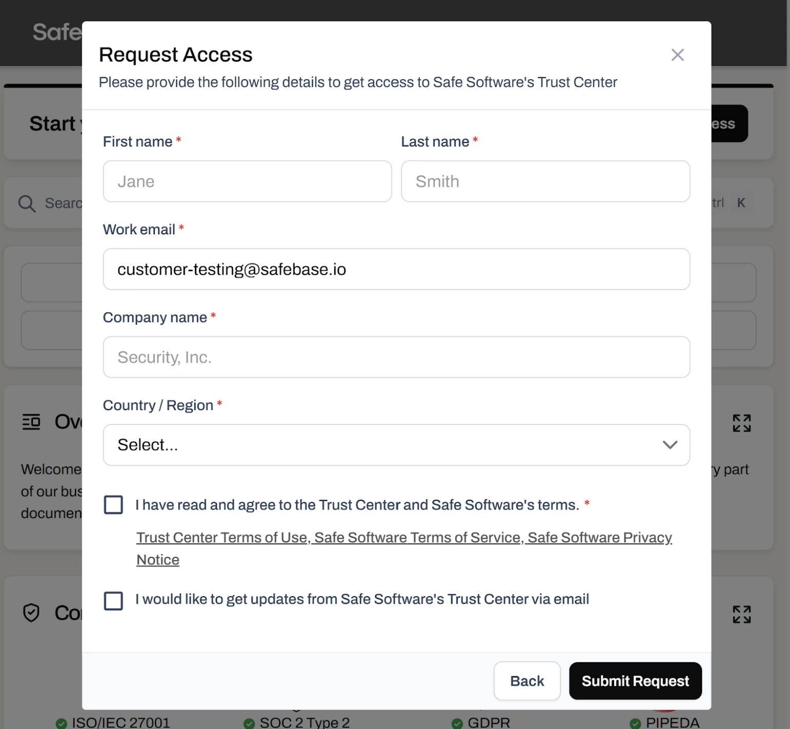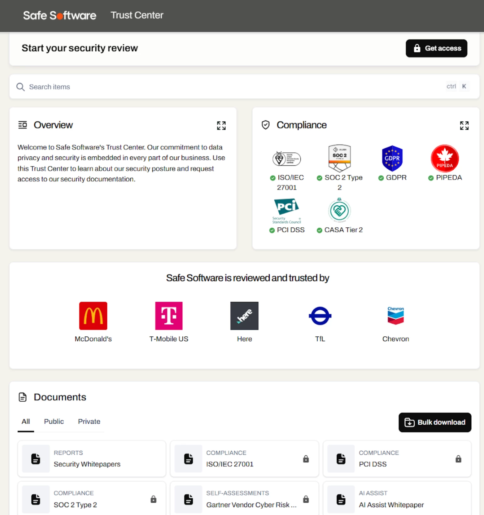 This guide explains how Safe Software Partners can access our Trust Center, review private security and compliance content, and safely share information with customers.