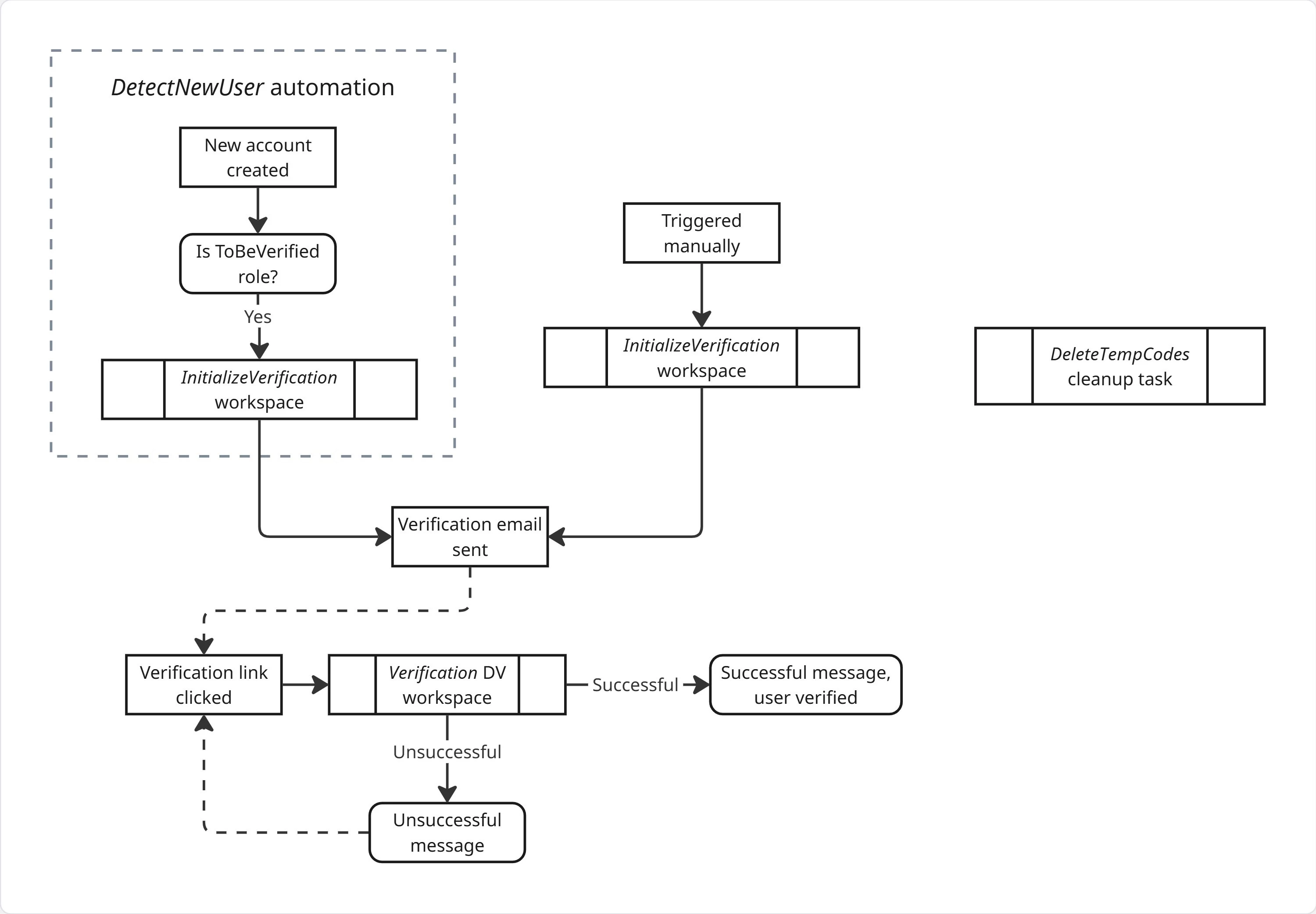 The workspace can also be triggered manually, if an existing user needs to be verified or if the code expires.