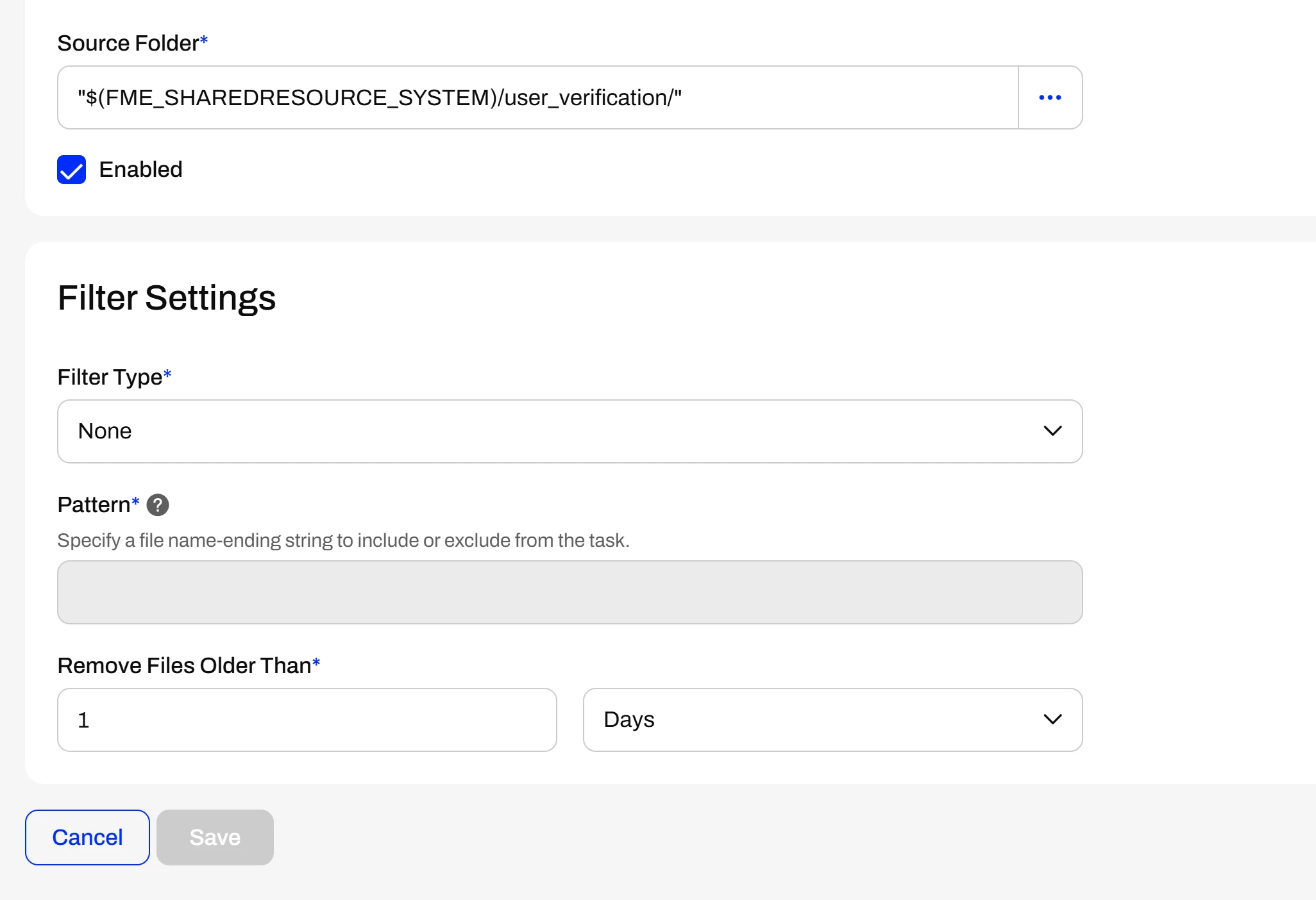 - Set the value of the temp_user_verification_folder deployment parameter. In this example, “$(FME_SHAREDRESOURCE_SYSTEM)/user_verification” has been used.