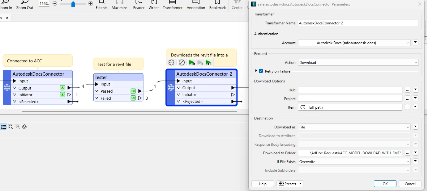 I’m currently working with several Revit files hosted on ACC, and I have put together a workflow that can read a specific ACC folder and identify a federated model. The process successfully reads and downloads the host file; however, I have been unable to download the associated linked files.