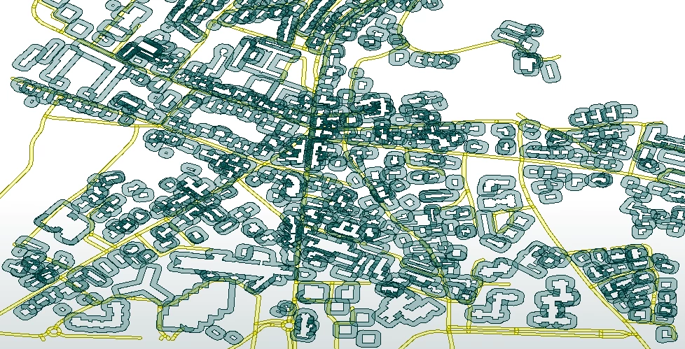 - Finding out the building footprints (BFs) that are towards the road (since they make a uniform line)