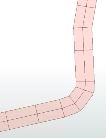 The Bufferer works great when the line segments are straight, but when a turn is introduced, I get slivers and overlaps as seen in this screenshot: