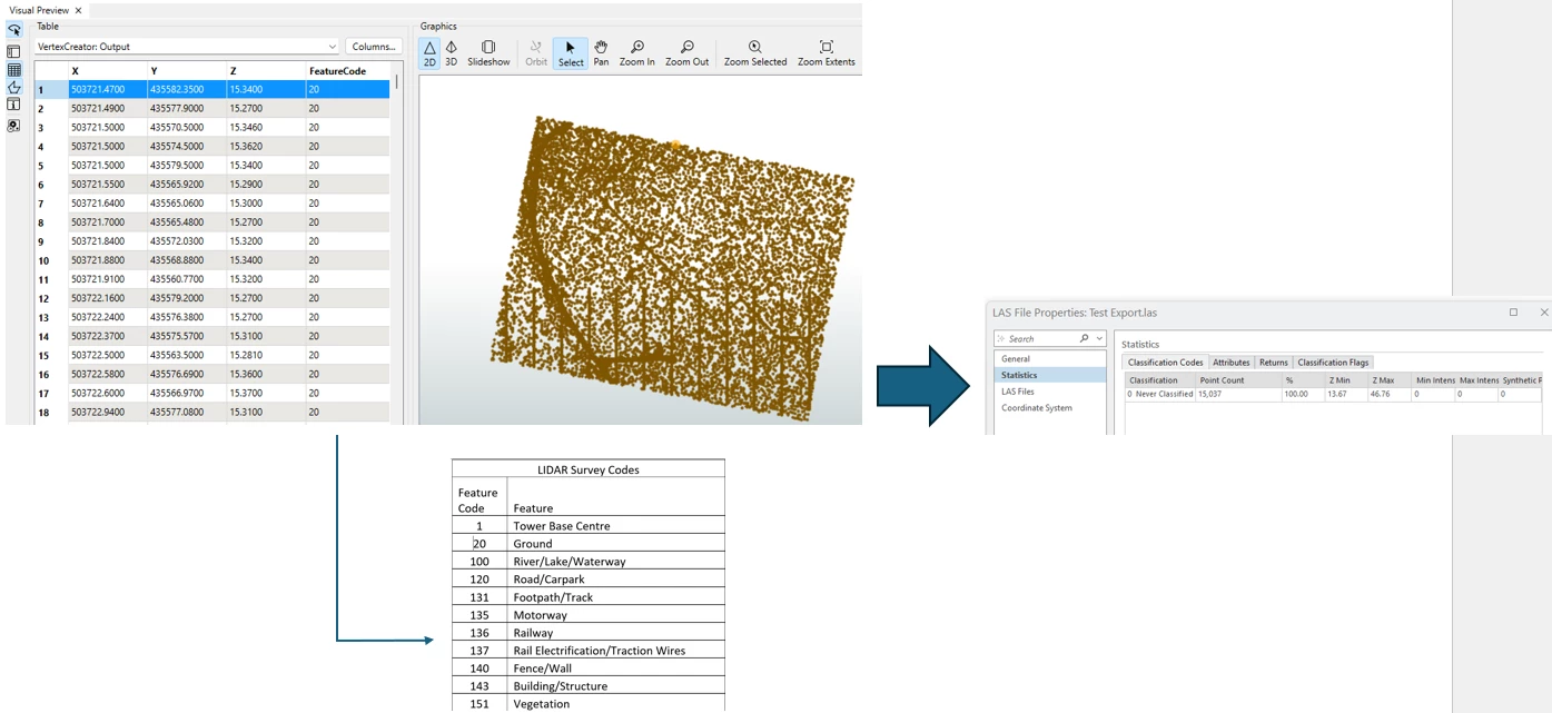 The custom classifications are based on codes contained in the original XYZ files as text, and these values are stored in a table, an example of which is shown below: