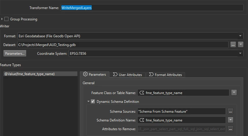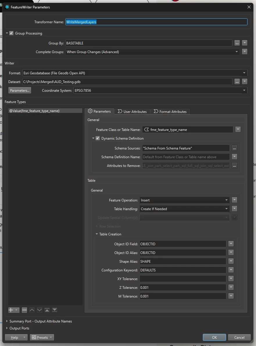 I have a workbench that takes data from Oracle, merges it with a few other tables, runs it through a schema scanner and then tries to output to a file geodatabase.