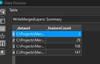 The summary is showing the feature count
