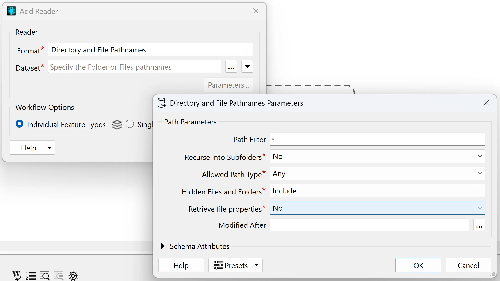 Under path parameters for the reader it no longer has "retrieve file properties" which means I can't access the create date of files breaking one my workbenches.