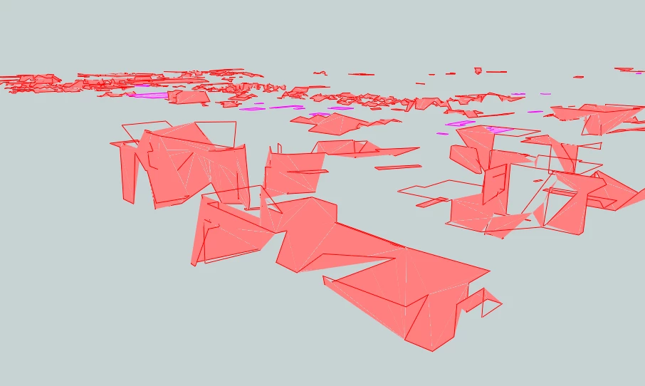 In order to do that, I am using the 'Dissolver' Transformer with the Group Processing option on. My issue is that some of the edges inside the building are remaining because they do no fit on the Z axis (see screenshots below).
