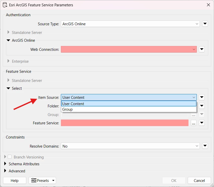 But in the Esri ArcGIS Feature Service it’s not possible without a group? Is this correct?